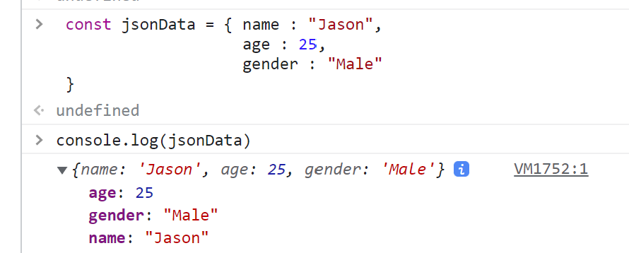 let userData = { name: 'Jason', age : 25, gender : 'Male' };